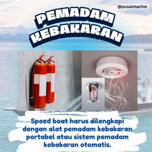 3. Pemadam Kebakaran: Speed boat harus dilengkapi dengan alat pemadam kebakaran portabel atau sistem pemadam kebakaran otomatis